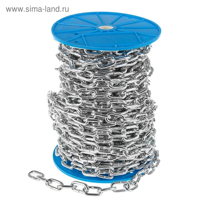 Цепь короткозвенная ТУНДРА krep, DIN766, диаметр 6 мм, сварная, оцинкованная, 30 м