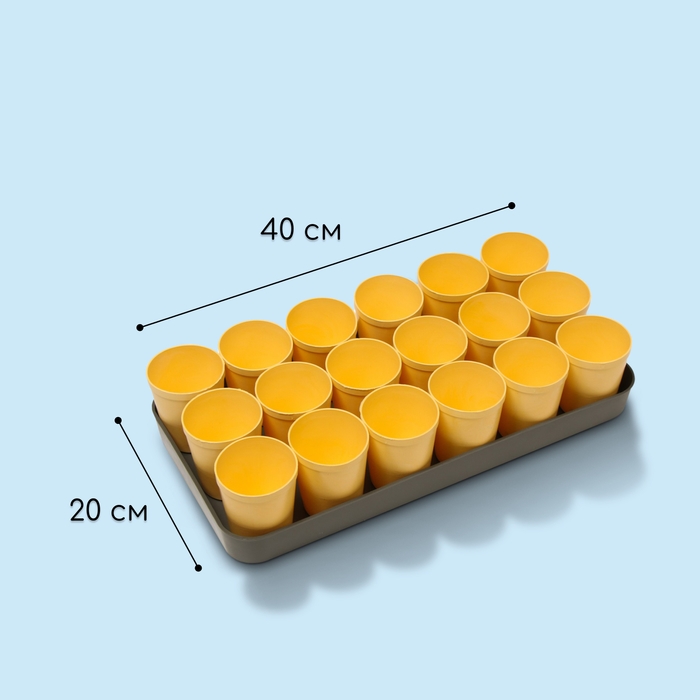Набор для рассады: стаканы по 250 мл (18 шт.), поддон 40 × 20 см, цвет МИКС, Greengo
