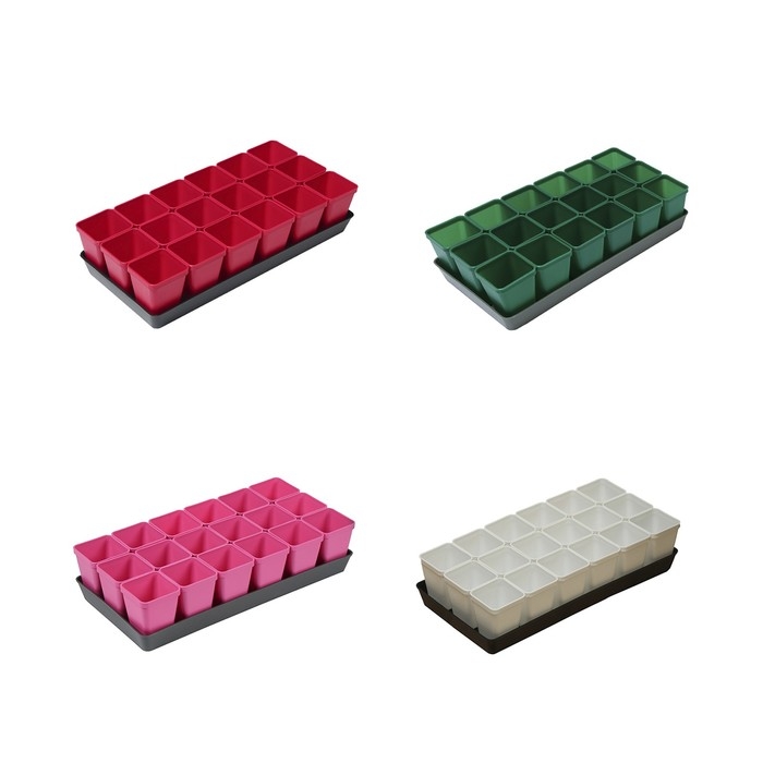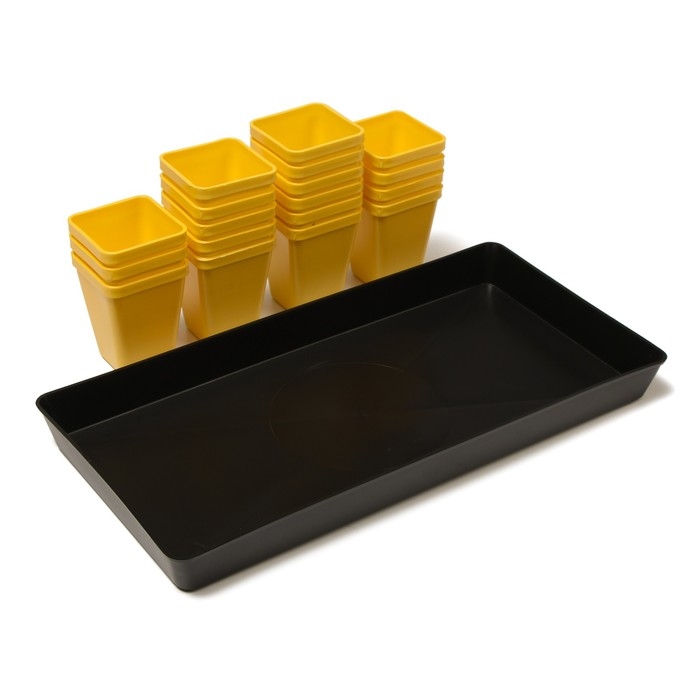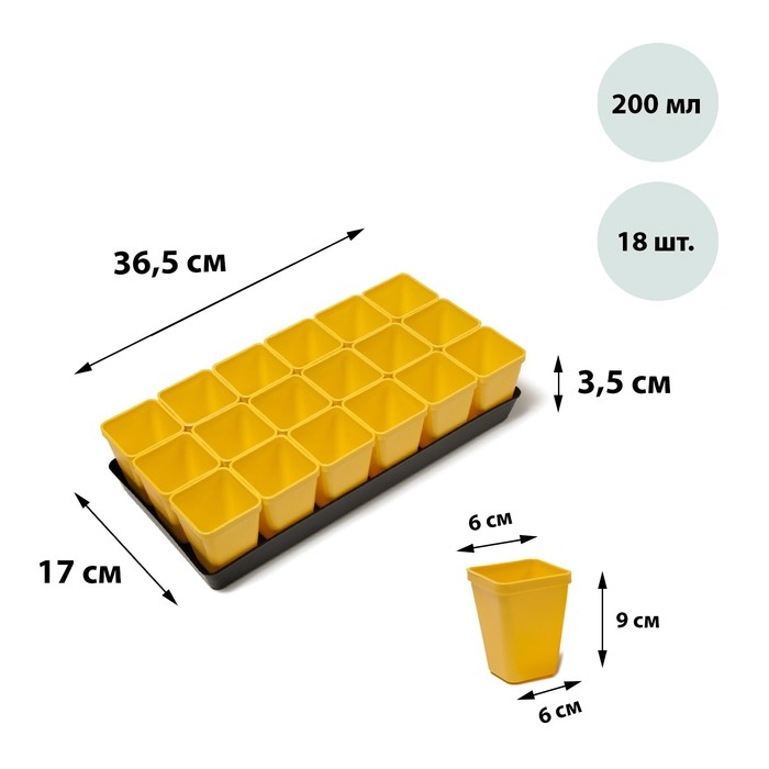 Набор для рассады: стаканы по 200 мл (18 шт.), поддон 36,5 × 17 см, цвет МИКС, Greengo