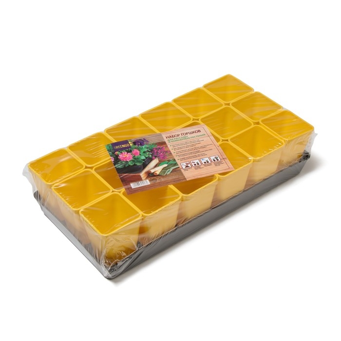 Набор для рассады: стаканы по 250 мл (18 шт.), поддон 40 × 20 см, цвет МИКС, Greengo