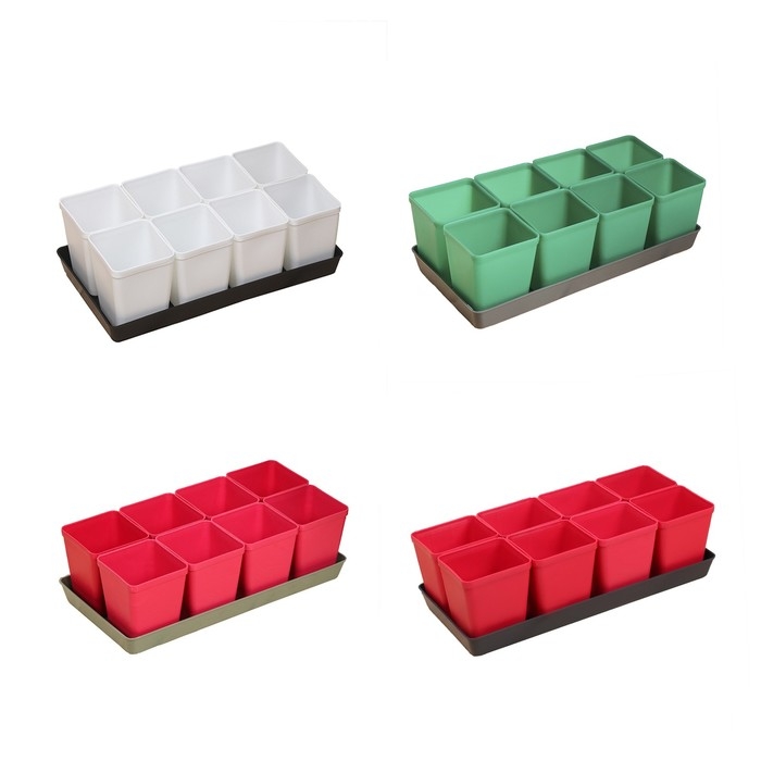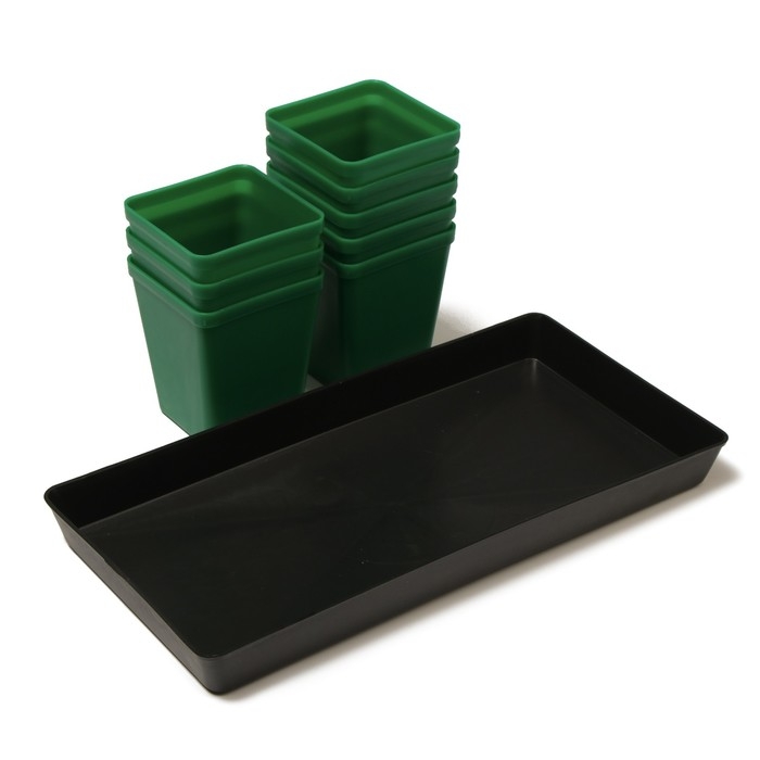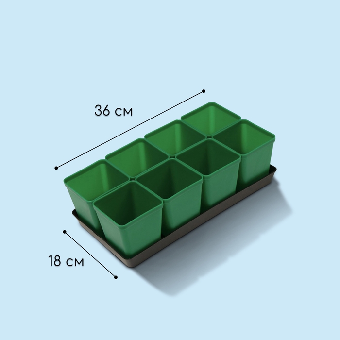 Набор для рассады: стаканы по 600 мл (8 шт.), поддон 36 × 18 см, цвет МИКС, Greengo
