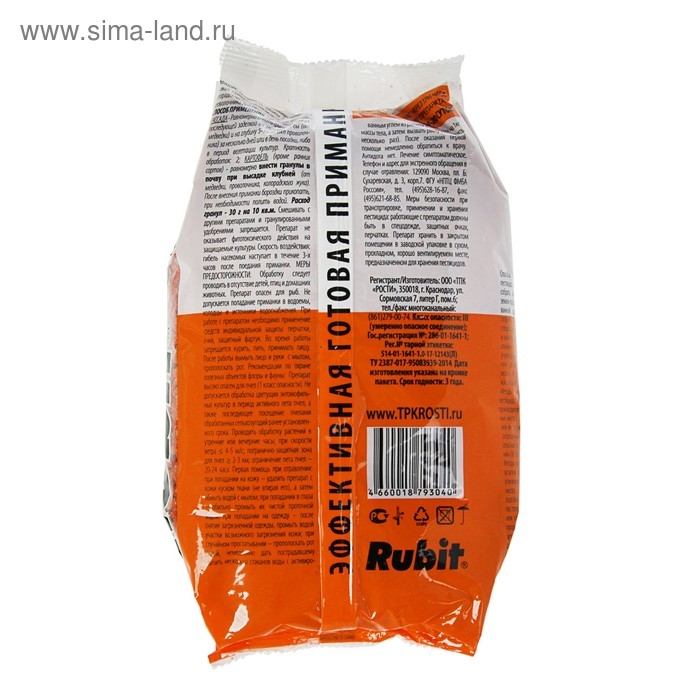 Рубит от медведки – химический препарат на основе современного инсектицида. Отличается высокой эффективностью, безопасностью для человека, животных. Выпускается в виде разноцветных гранул, готовых к применению. Эффект сохраняется 14 дней. Особенности препарата Средство от медведки Рубит изготавливается на основе крупы с добавлением активного отравляющего компонента, вспомогательных – для привлечения насекомых.