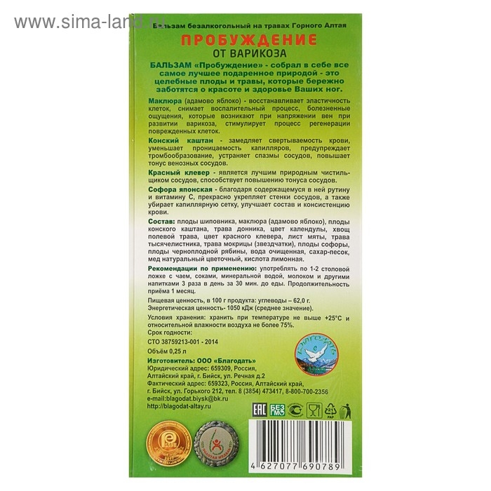 Бальзам безалкогольный "Пробуждение" от варикоза, 250 мл