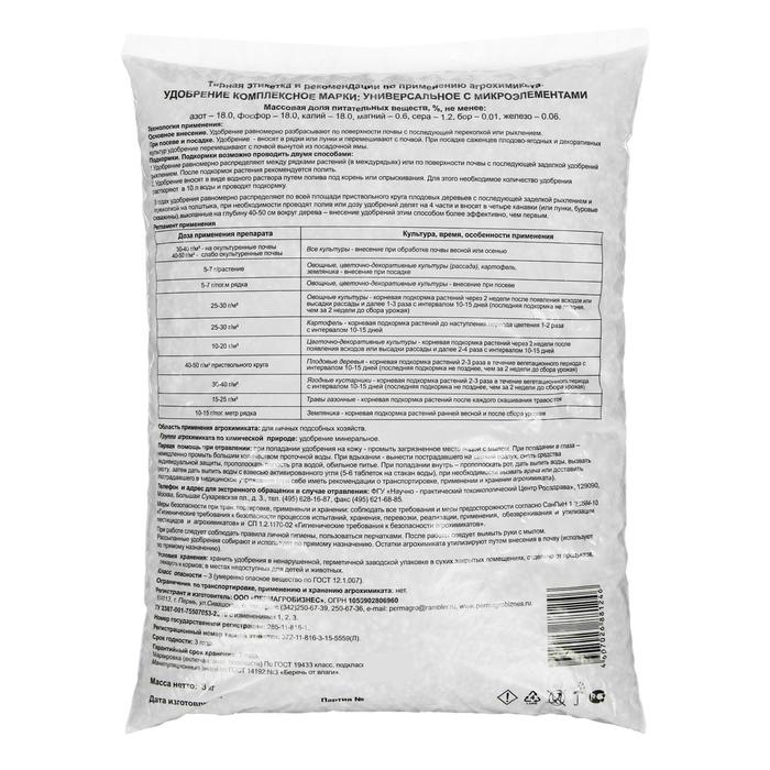 Удобрение минеральное "Пермагробизнес", универсальное с микроэлементами, 3 кг