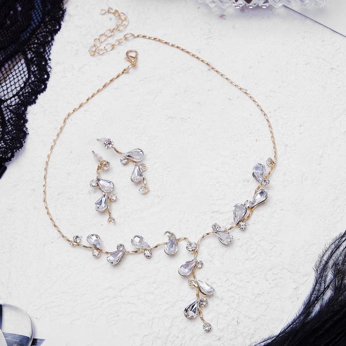 Набор 2 предмета: серьги, колье «Изумление» цветение, цвет белый в золоте, 42 см