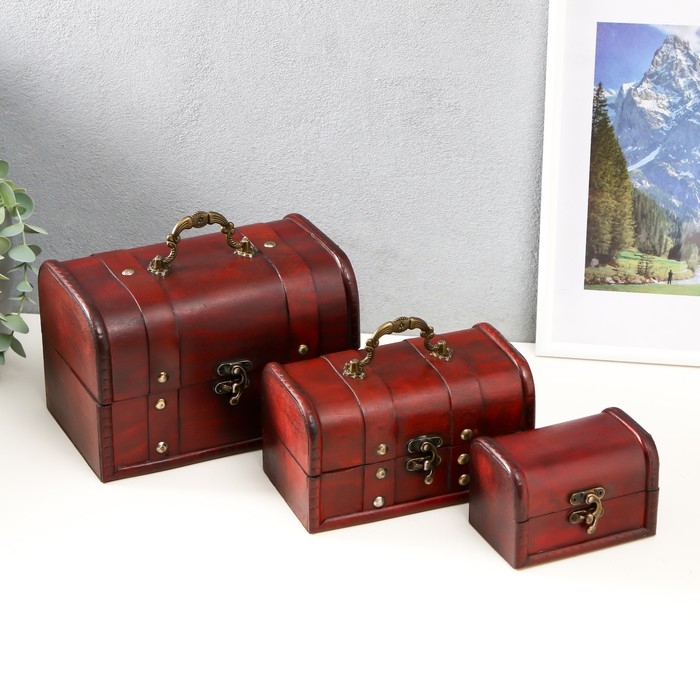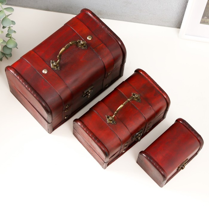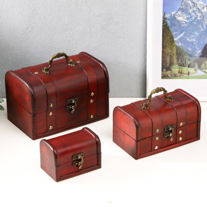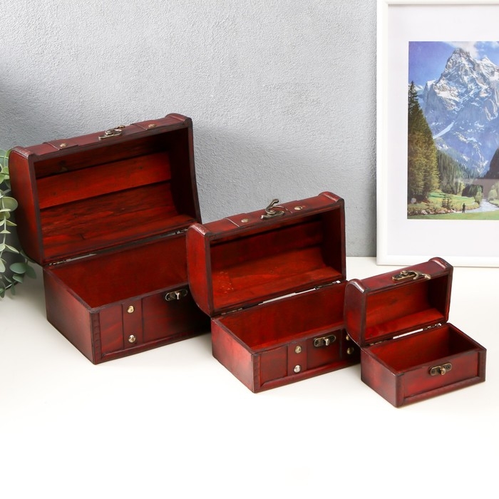 Шкатулка дерево сундучок (набор 3 шт) "Винтаж" 10,5х7,5х7,5см;17х9,5х10 см; 19,5х13х13 см