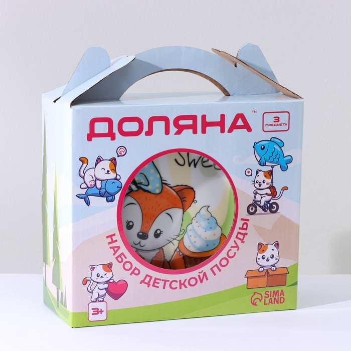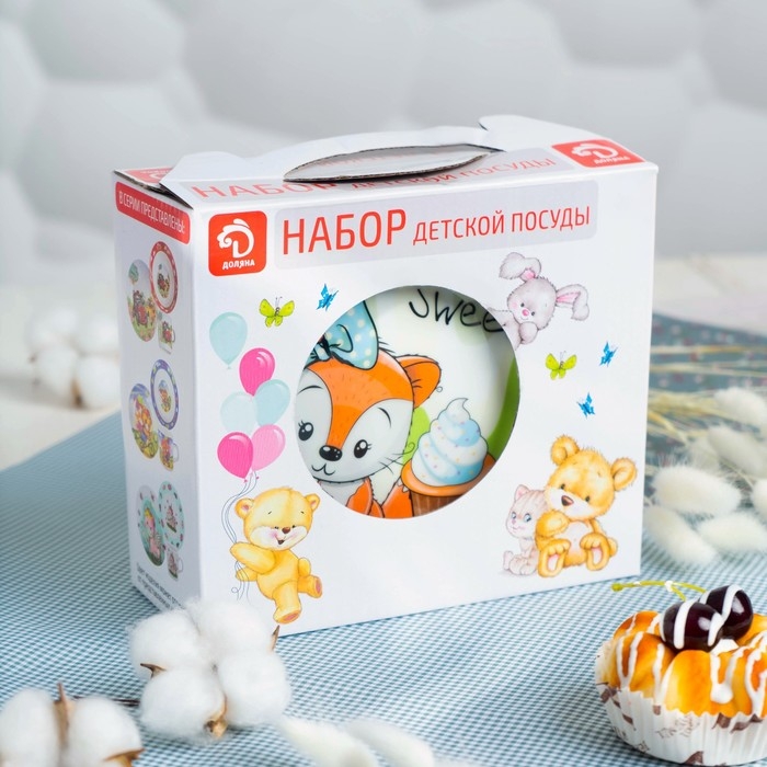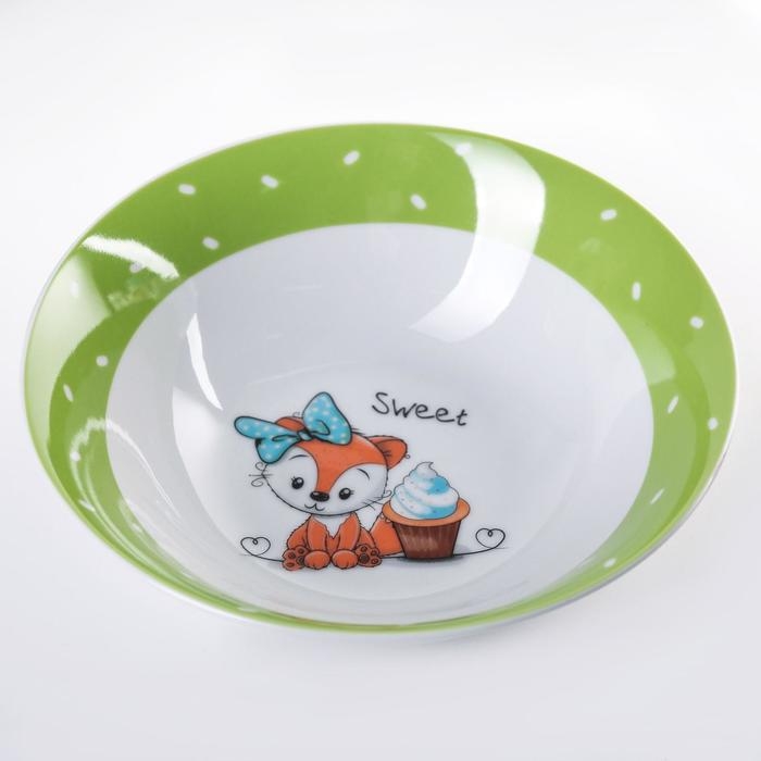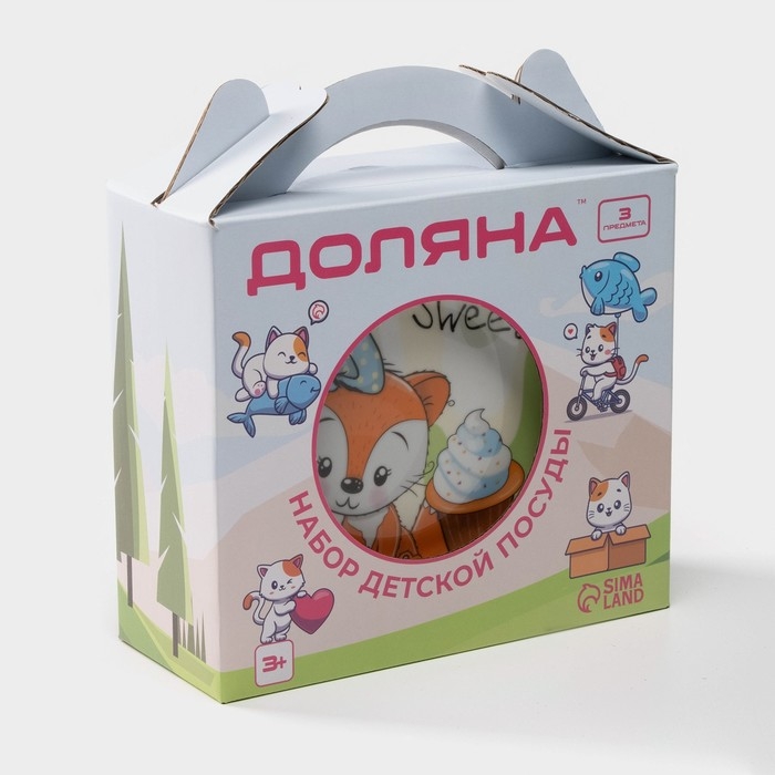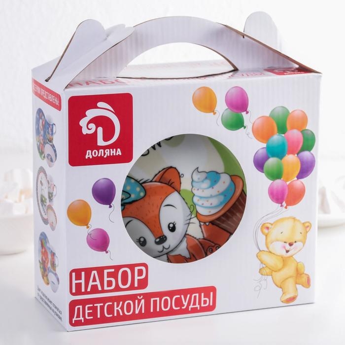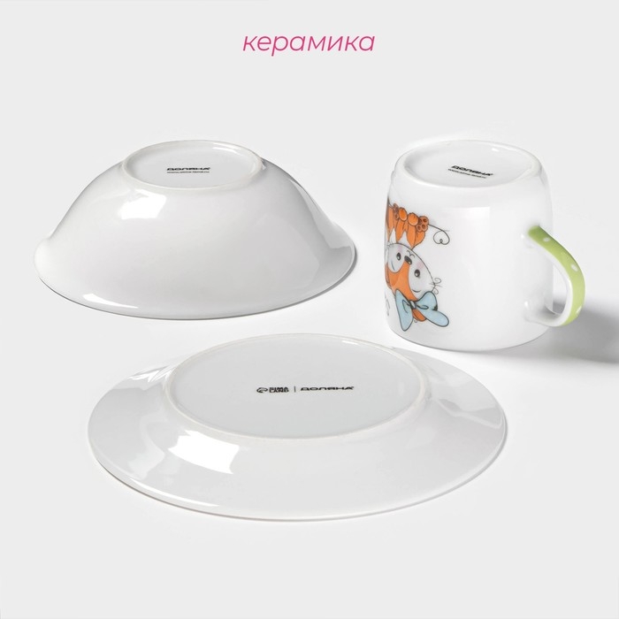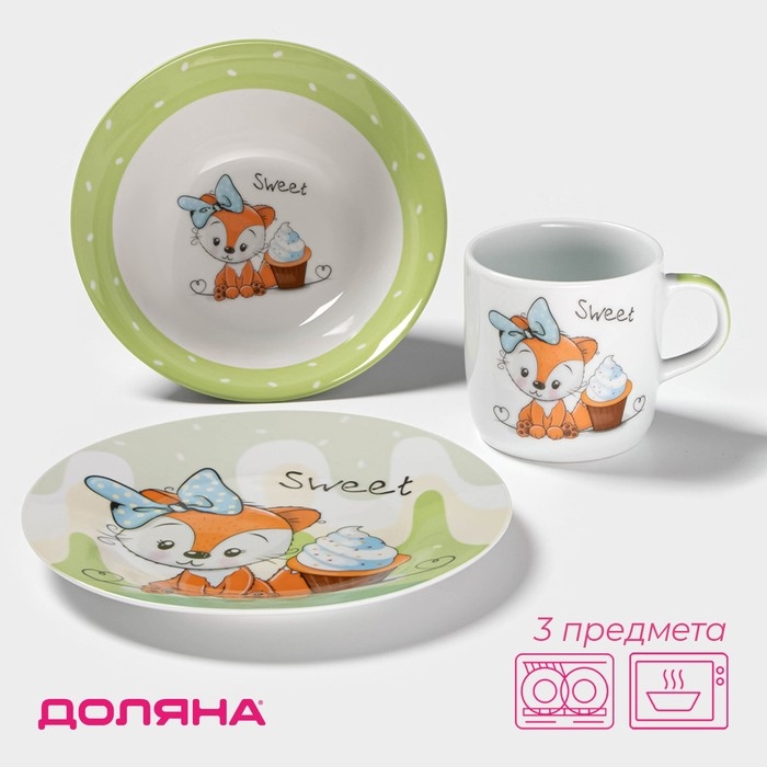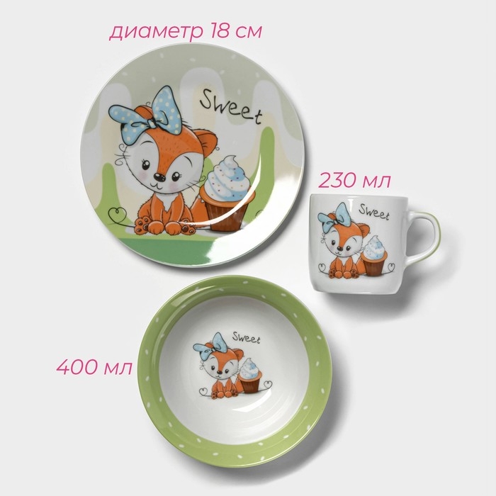 Набор детской посуды из керамики Доляна «Лисёнок», 3 предмета: кружка 230 мл, миска 400 мл, тарелка d=18 см