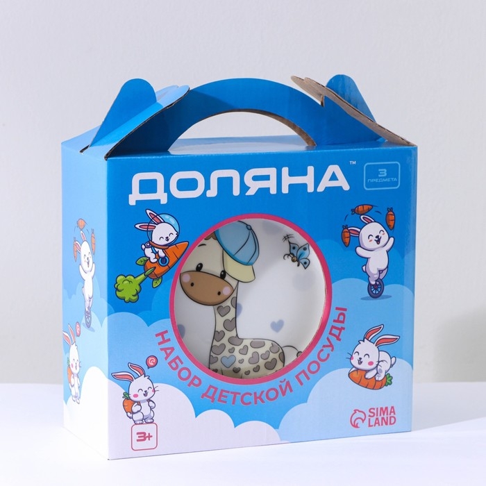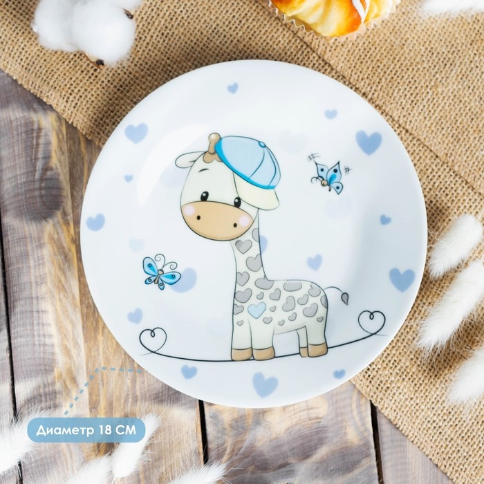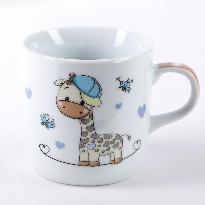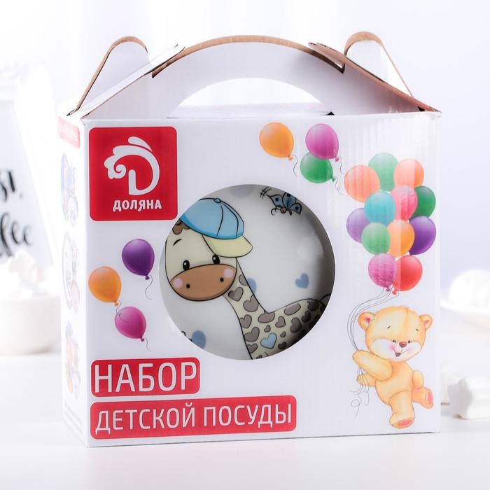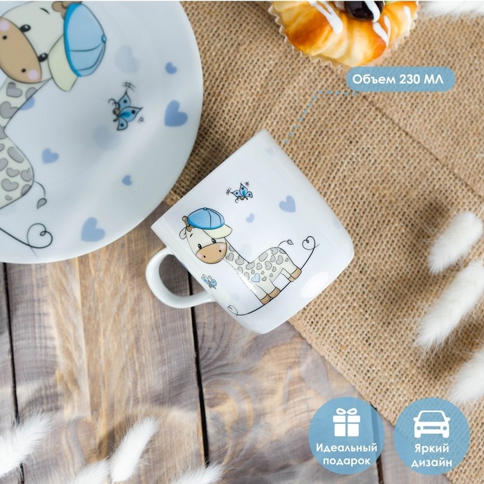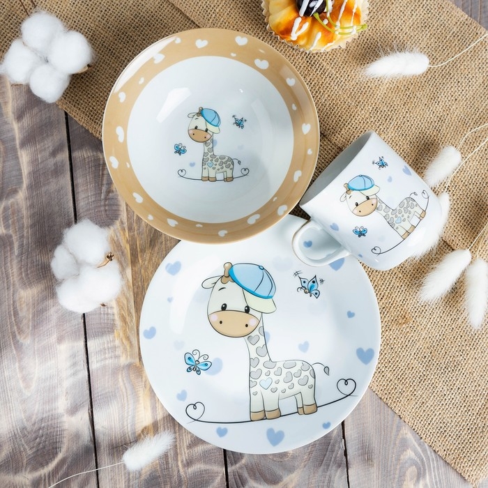 Набор детской посуды из керамики Доляна «Жирафик», 3 предмета: кружка 230 мл, миска 400 мл, тарелка d=18 см