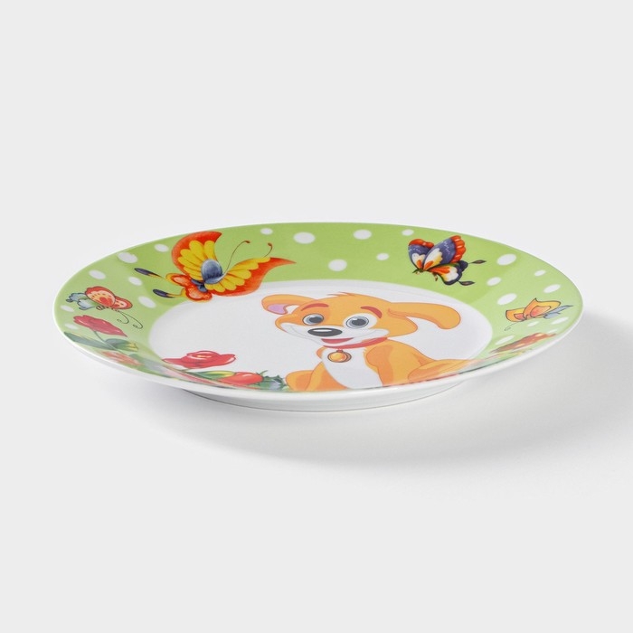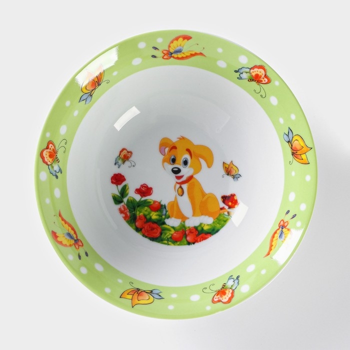 Набор детской посуды из керамики Доляна «Щенок», 3 предмета: кружка 230 мл, миска 400 мл, тарелка d=18 см