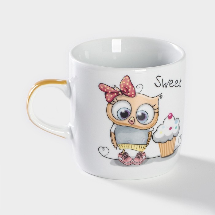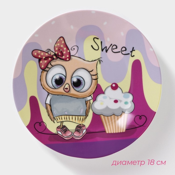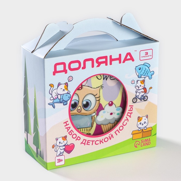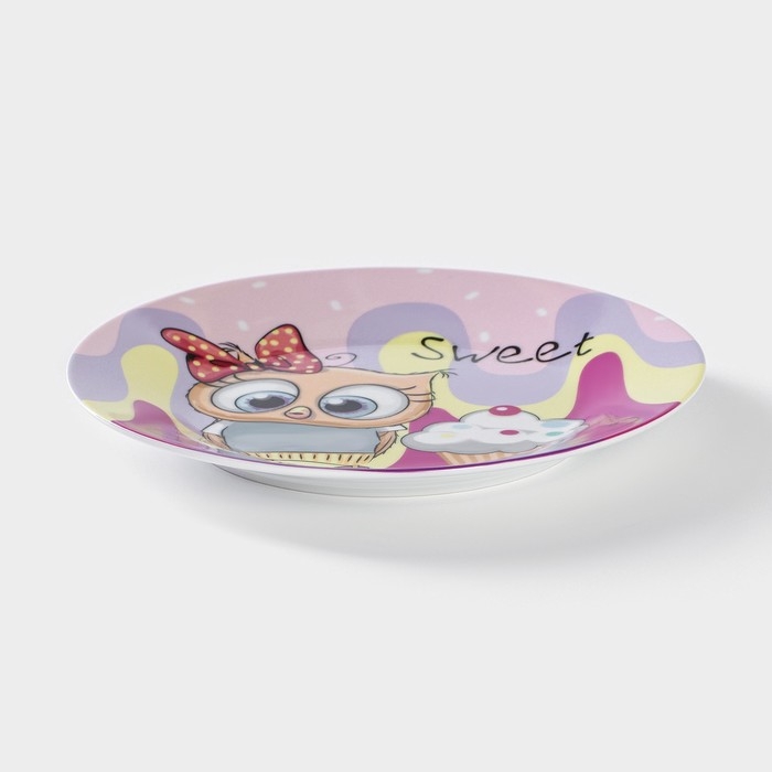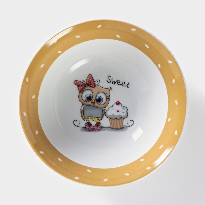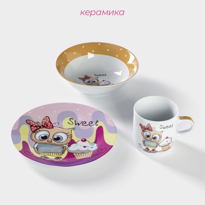 Набор детской посуды из керамики Доляна «Совёнок», 3 предмета: кружка 230 мл, миска 400 мл, тарелка d=18 см