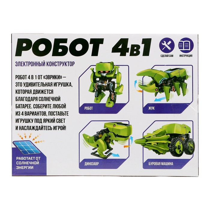 Электронный конструктор Эврики, 4 вида: робот, жук, динозавр, буровая машина, на солнечной батарее