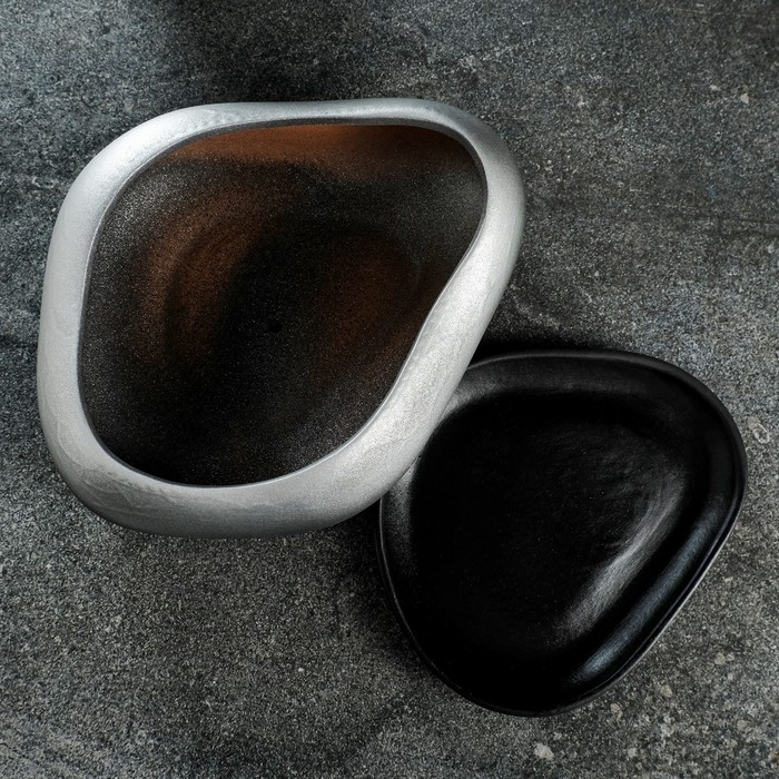 Горшок "Бонсай" для кактусов и суккулентов, большой черный с серебром, 2,3 л, 24х28 см