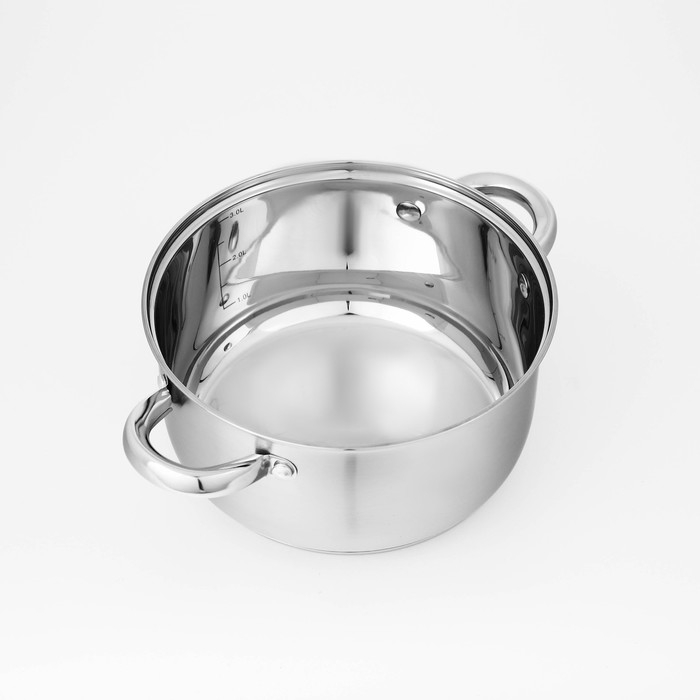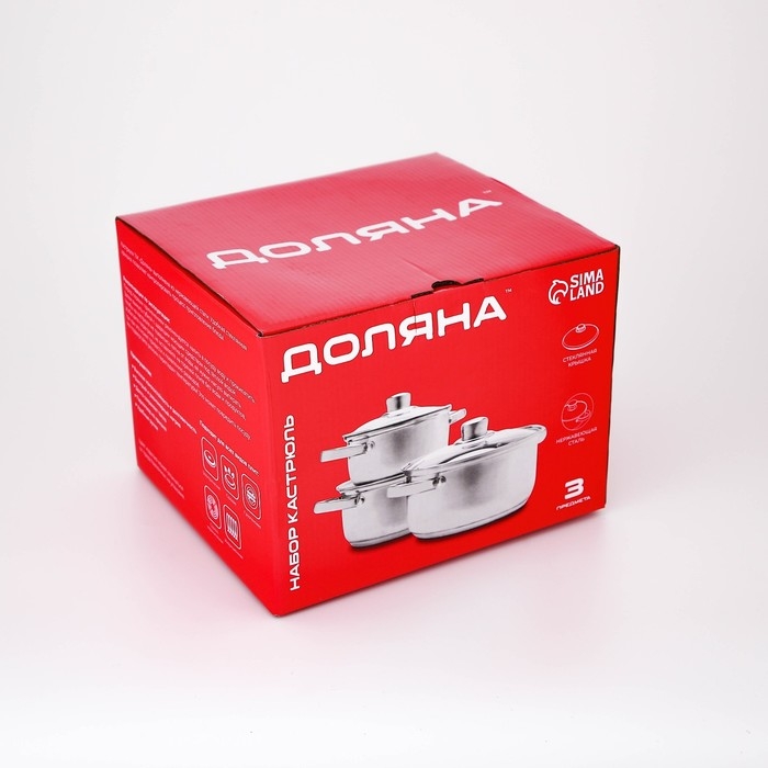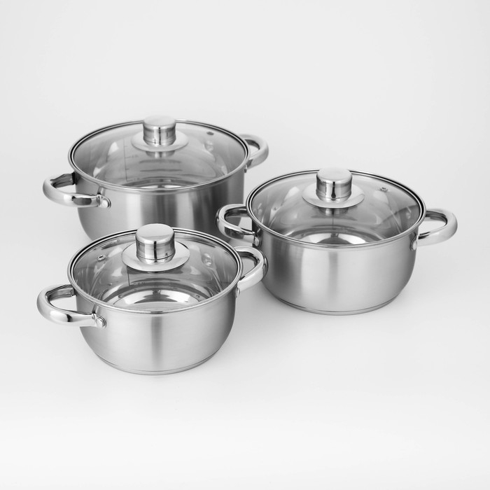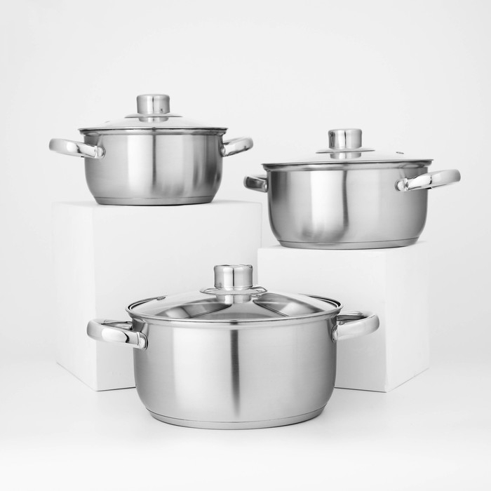 Набор кастрюль из нержавеющей стали Доляна «Гретте», 3 предмета: 1,6 л, 2,3 л, 3,2 л, крышки