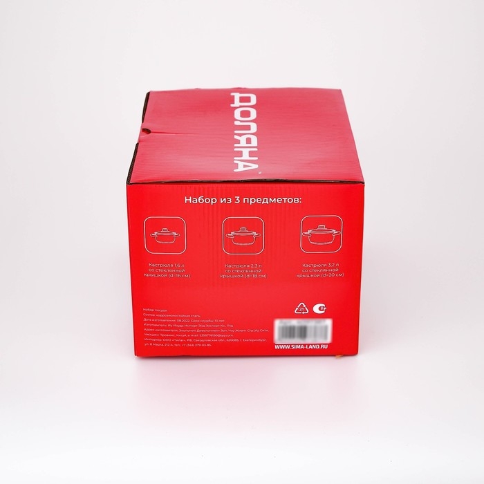 Набор кастрюль из нержавеющей стали «Классик», 3 предмета: 1 л (d=16 см), 1,5 л (d=18 см), 2 л (d=20 см)