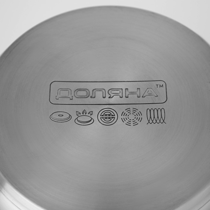 Кастрюли выполнены из нержавеющей стали марки AISI 201. Металл быстро проводит тепло и противостоит коррозии. Благодаря капсулированному дну посуду можно использовать на индукционной плите.