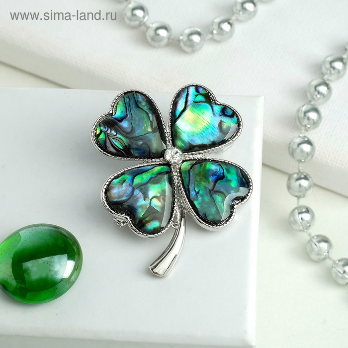 Брошь-кулон «Галиотис» клевер, цвет зелёный в серебре
