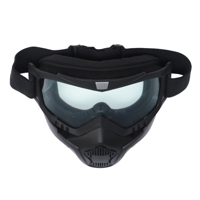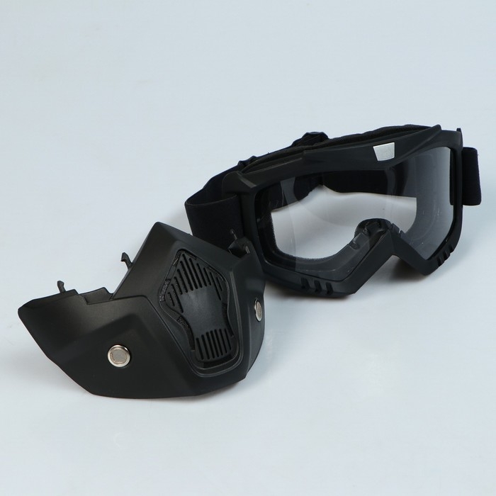 Очки-маска для езды на мототехнике, разборные, стекло прозрачное, черные