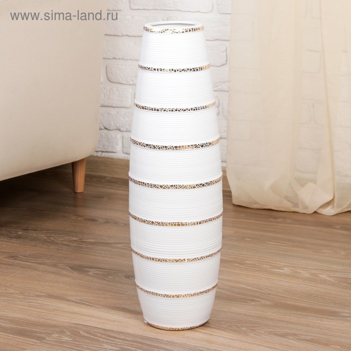 Ваза керамика напольная "Геометрия люкс" полосы, 60 см, белый