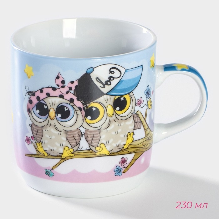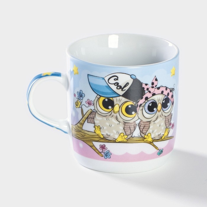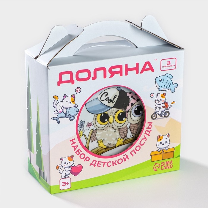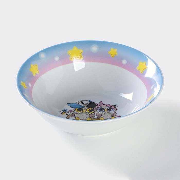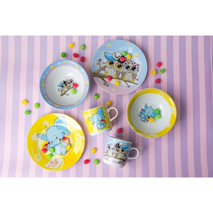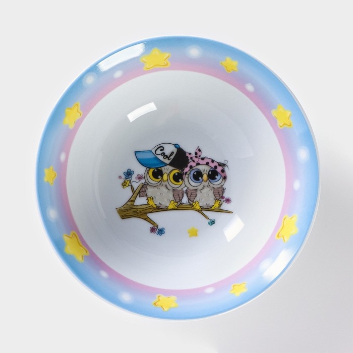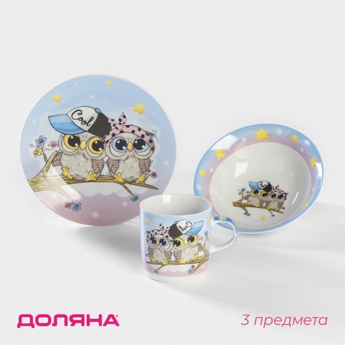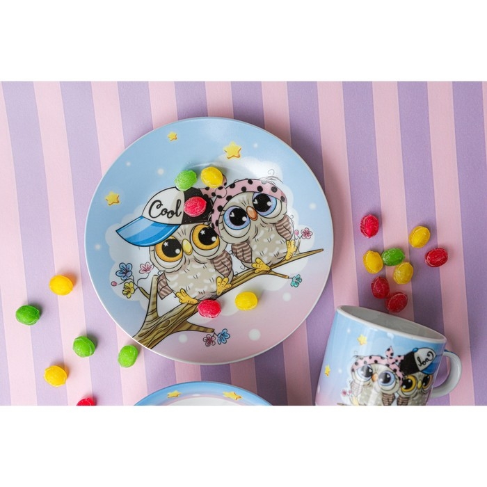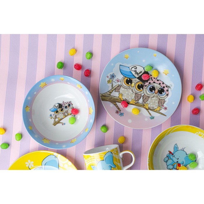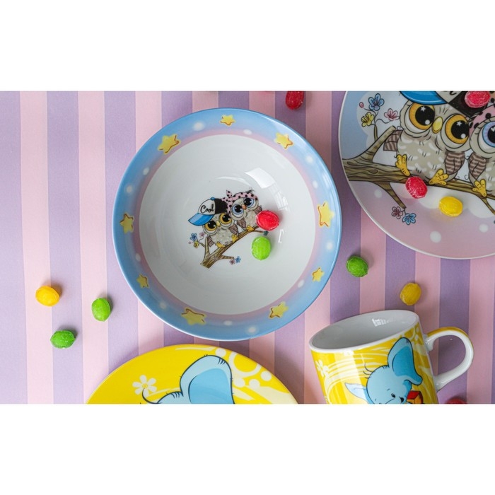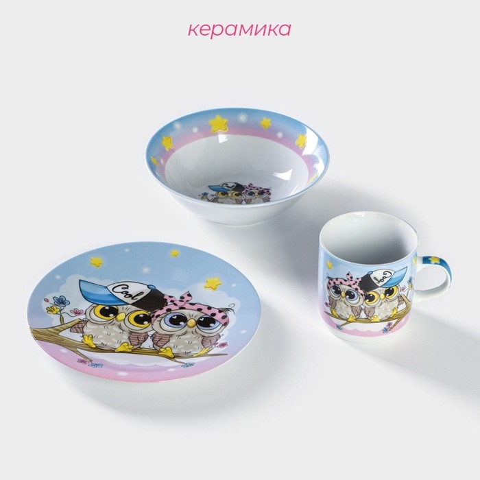 Набор детской посуды из керамики Доляна «Совы тинейджеры», 3 предмета: кружка 230 мл, миска 400 мл, тарелка d=18 см