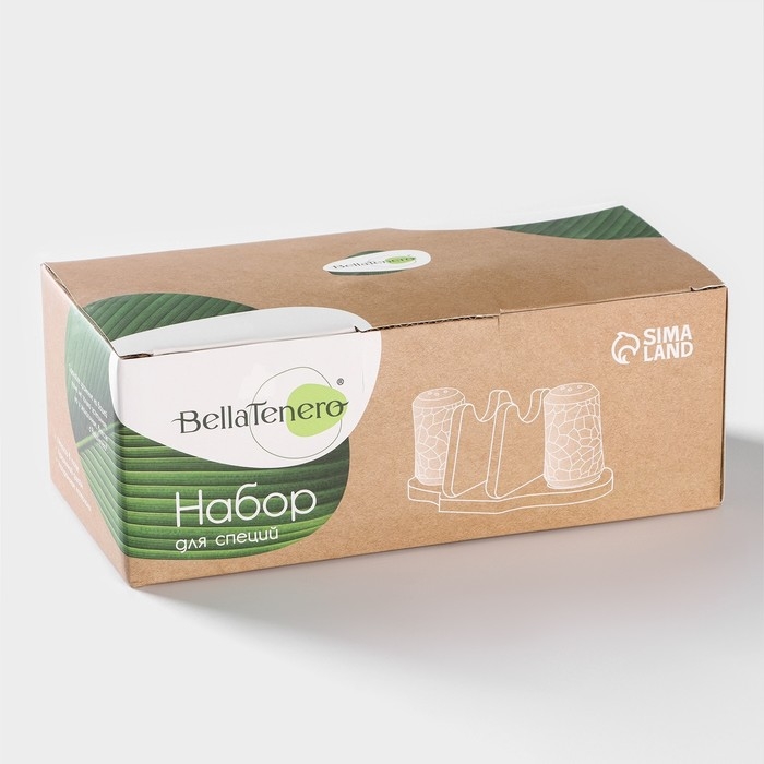 Набор для специй BellaTenero изготовлен из качественного фарфора. Кухонные изделия из фарфора отличаются прочностью и надёжностью, устойчивы к появлению царапин и резким перепадам температур. Благодаря оригинальному дизайну набор отлично впишется в интерьер вашей кухни и станет настоящей изюминкой при сервировке.