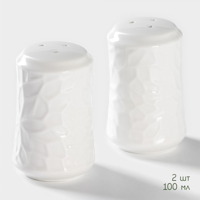 Набор фарфоровый для специй BellaTenero, 3 предмета: солонка 80 мл, перечница 80 мл, сахарница с ложкой 300 мл, цвет белый