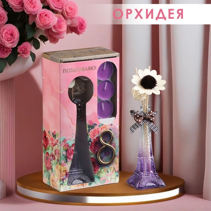 Набор подарочный "Париж" (диффузор и свечи) орхидея, "Богатство Аромата" 8 марта