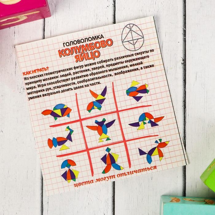 Головоломка «Колумбово яйцо» — это увлекательная и развивающая игра для детей от 3 лет. Она изготовлена из качественной тонкой фанеры и предназначена для развития мелкой моторики, логического мышления и зрительно-моторной координации у ребёнка.