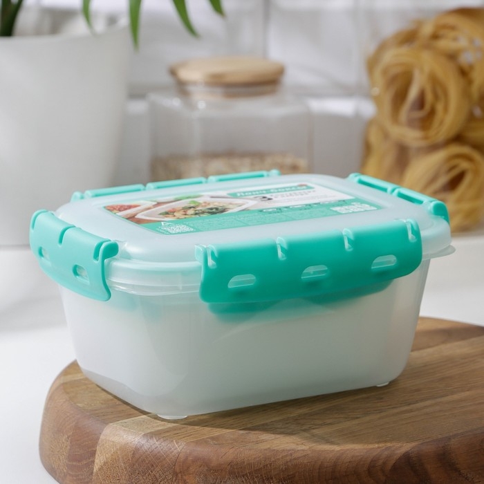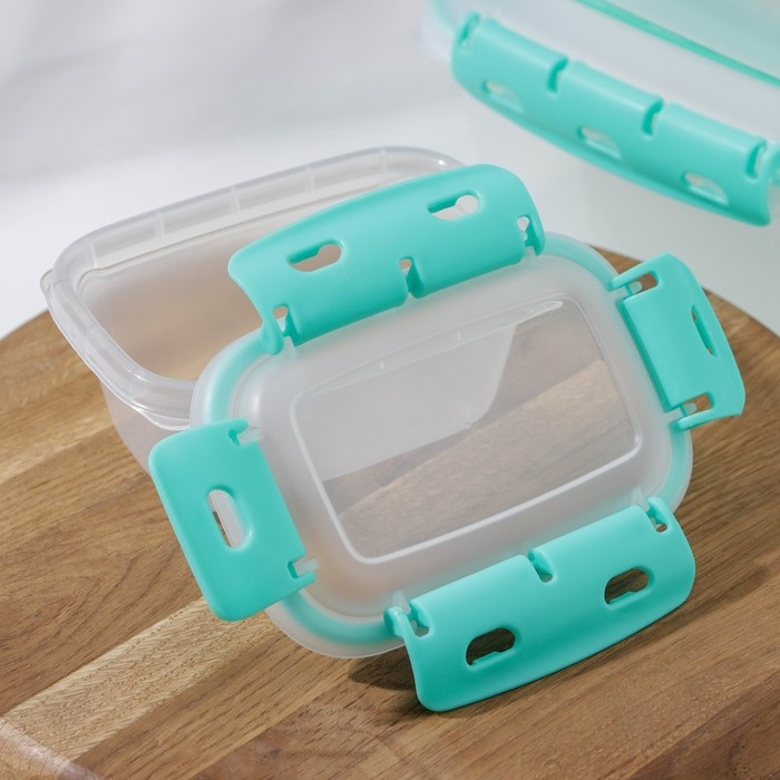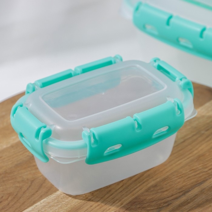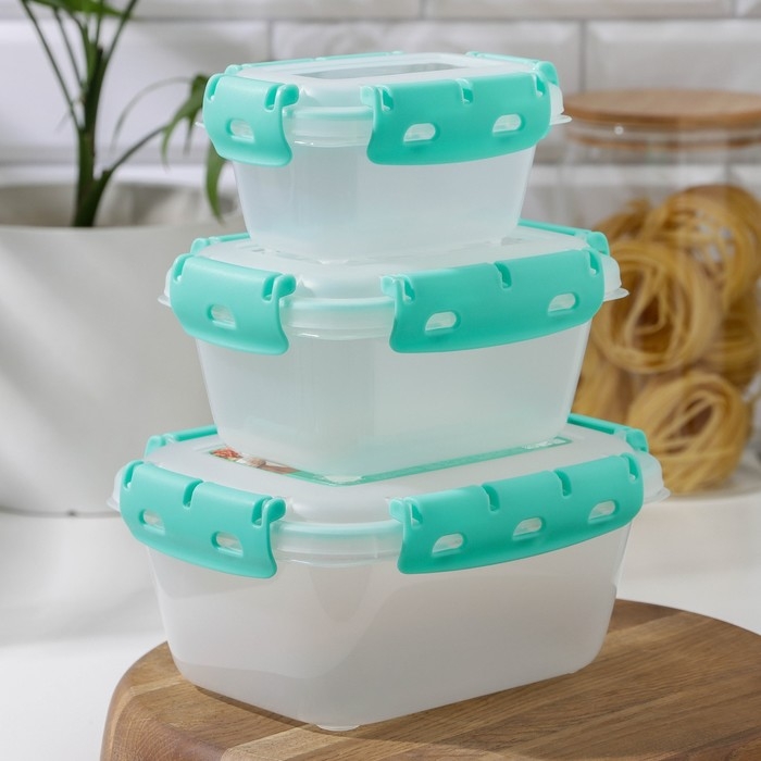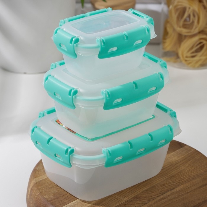 Набор контейнеров пищевых Доляна, 3 шт: 1 л, 18,5×12×7 см, прямоугольные, прозрачные, крышка зелёная