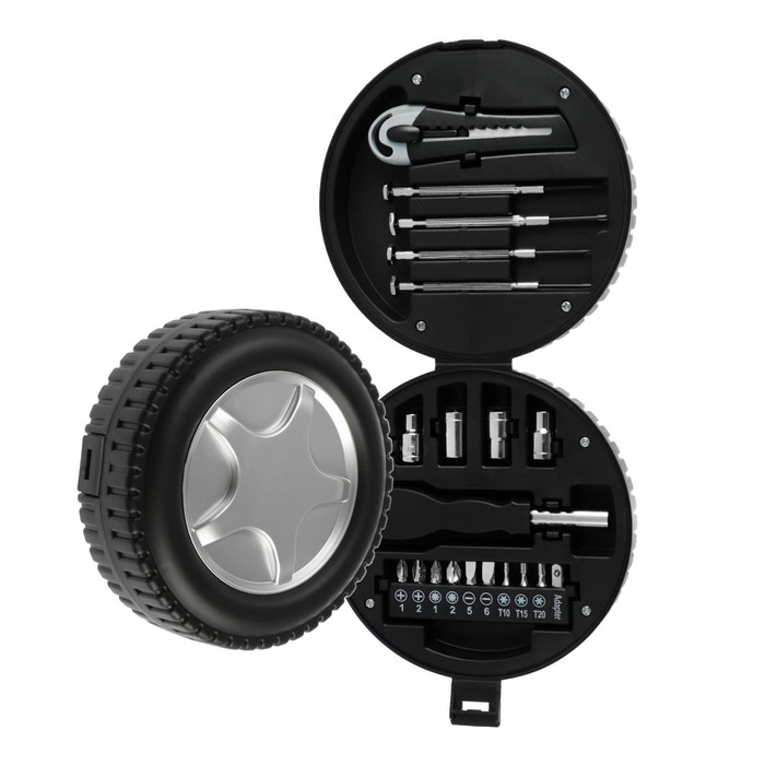 Набор инструментов ТУНДРА, подарочный пластиковый кейс "Колесо", 20 предметов
