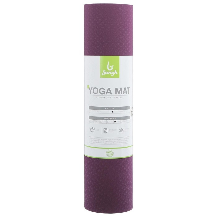 Коврик для йоги Sangh, 183×61×0,8 см, цвет фиолетовый