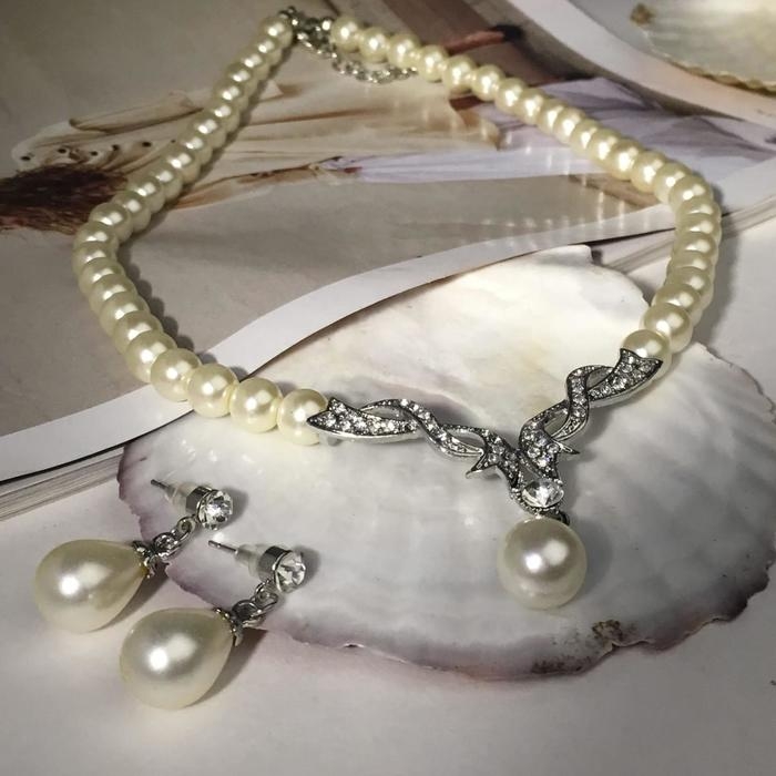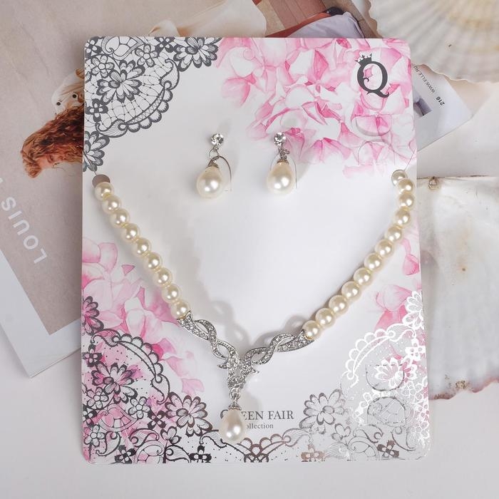 Набор 2 предмета: серьги, колье «Вернисаж» жемчужная капля, цвет белый в серебре, 45 см