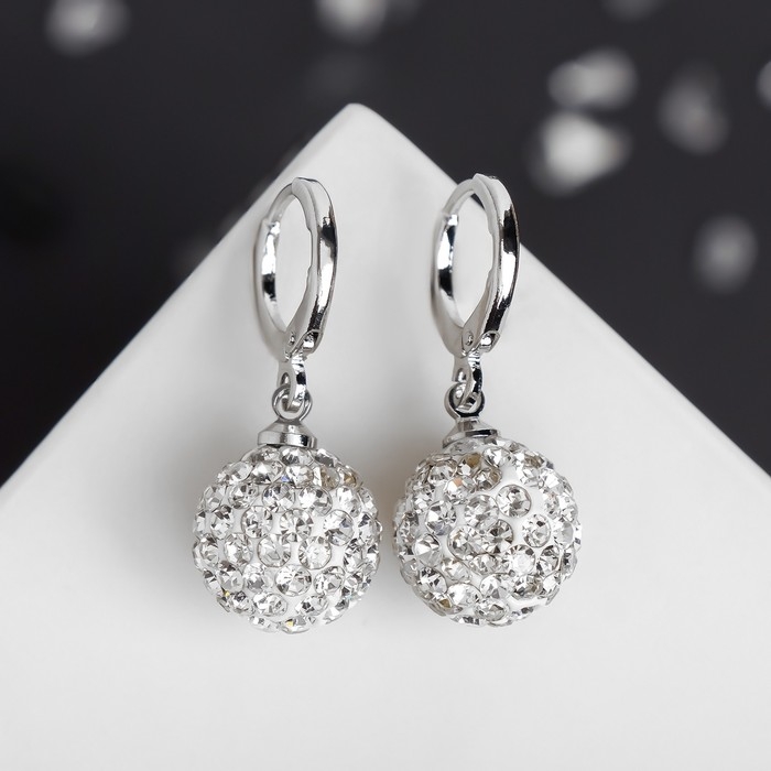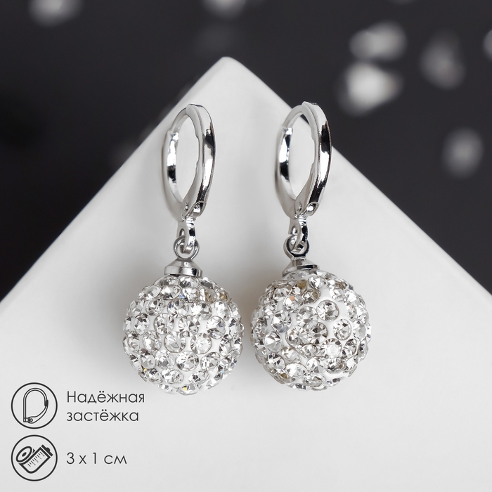 Серьги со стразами «Шамбала» сияние, цвет белый в серебре