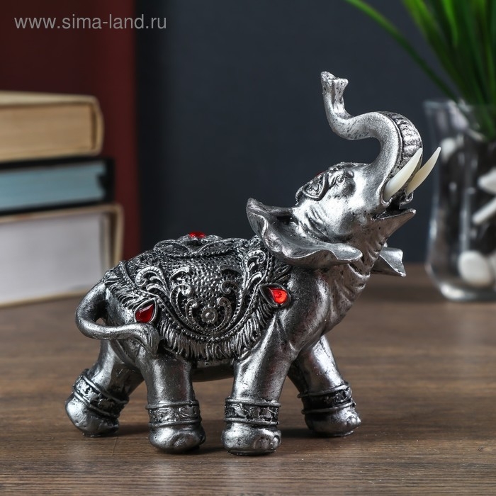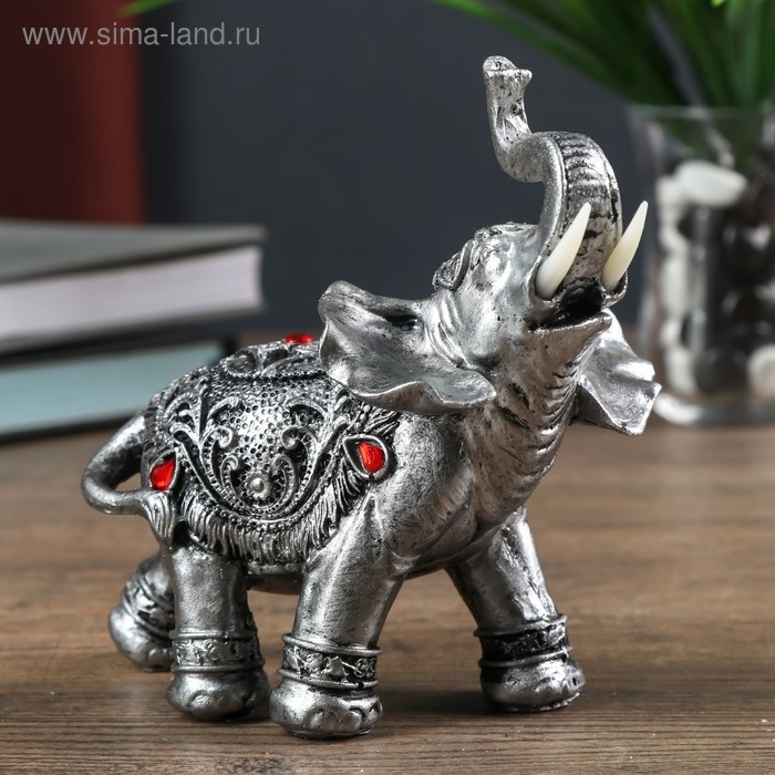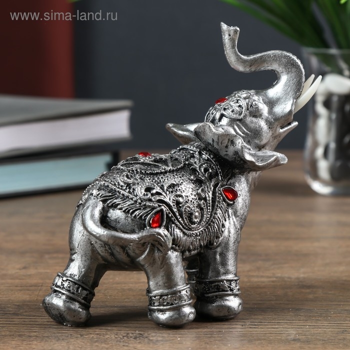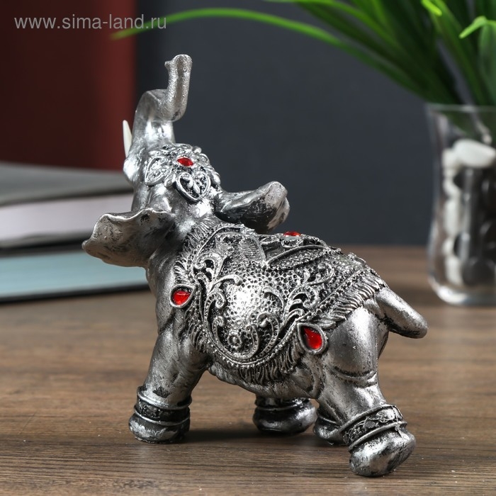 Сувенир полистоун "Серебристый слон в попоне с рубинами" 13х7,5х15,5 см