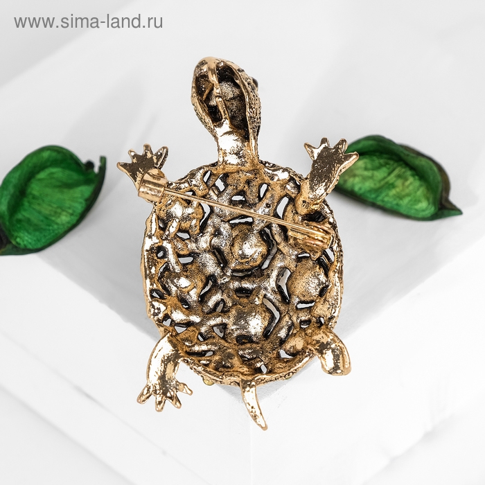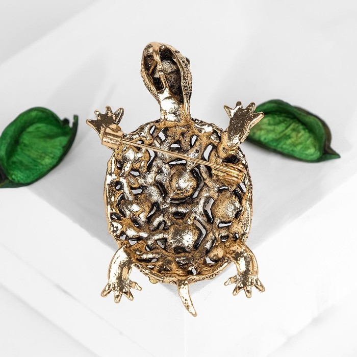 Брошь «Черепашка» в крупных стразах, цветная в чернёном золоте