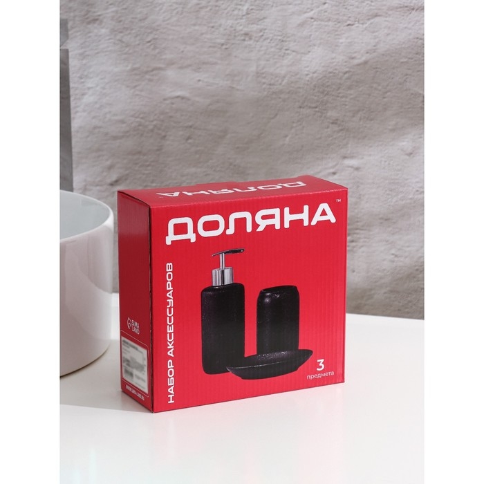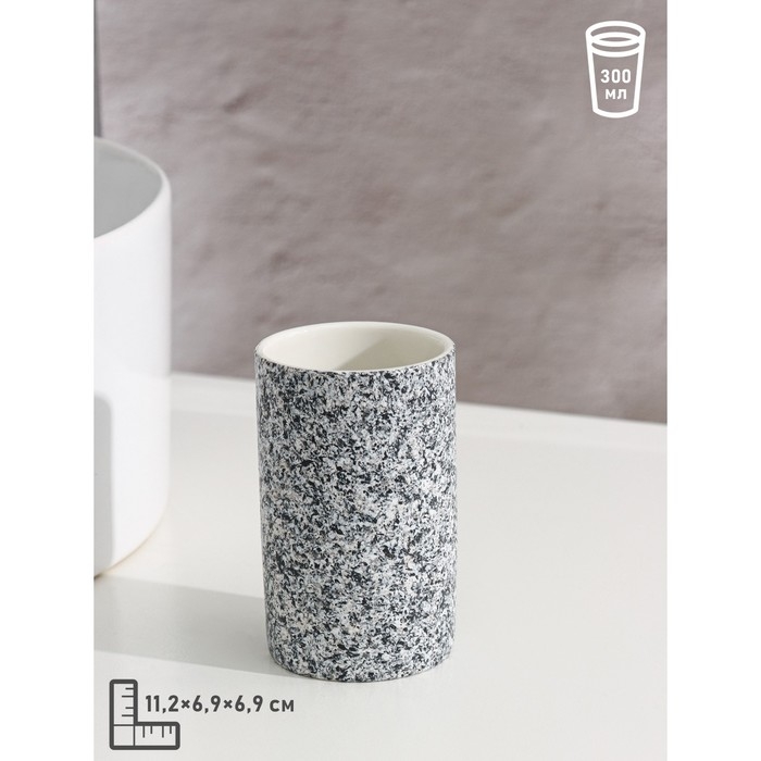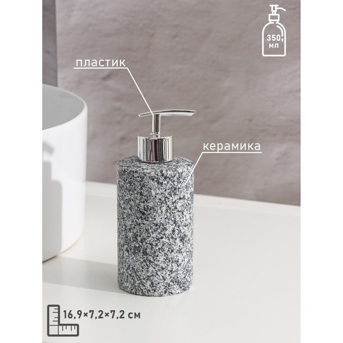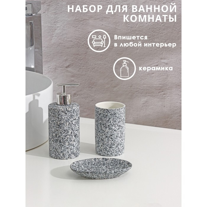 Набор аксессуаров для ванной комнаты Доляна «Гранит», 3 предмета (дозатор 350 мл, мыльница, стакан), цвет серый