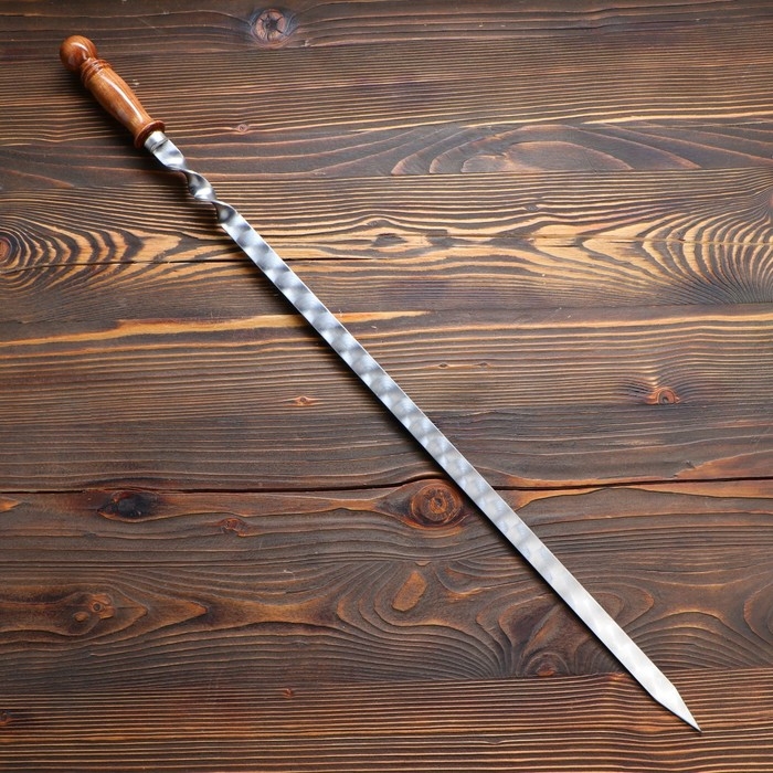 Шампур с деревянной ручкой, рабочая длина - 60 см, ширина - 20 мм, толщина - 3 мм с узором