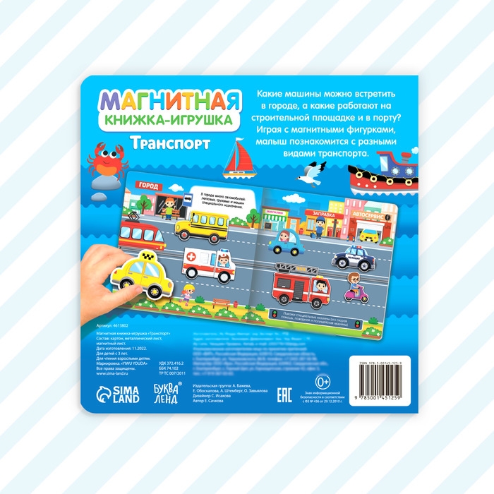 Яркая книга-игра с магнитными страничками и фигурками познакомит малыша с разными видами транспорта. Узнавать новое с такой игрушкой весело и интересно!