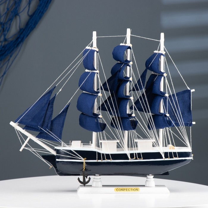 Корабль "Диана" трехмачтовый с синими парусами, 40*9*36см