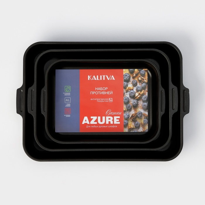 Набор противней «Лазоньера», 3 предмета: 19×25 см, 23×30 см, 27×35 см, h=7 см, антипригарное покрытие, цвет синий