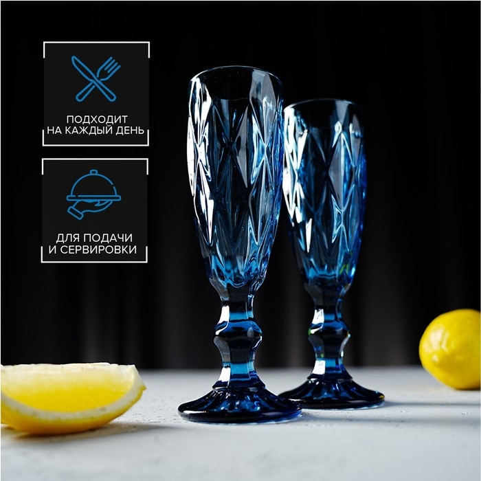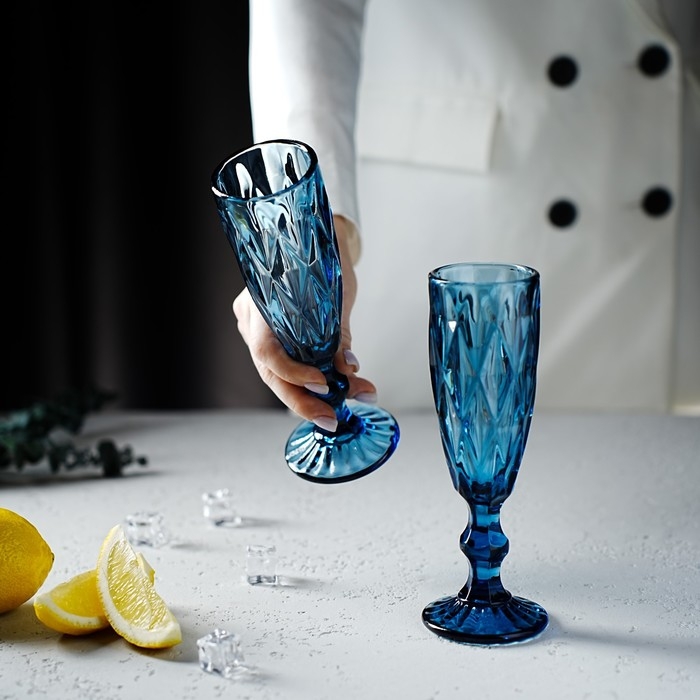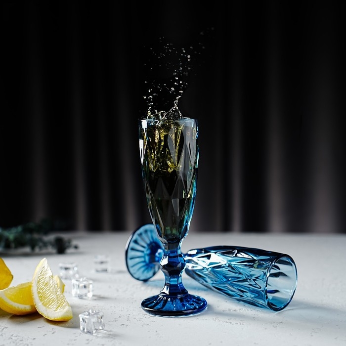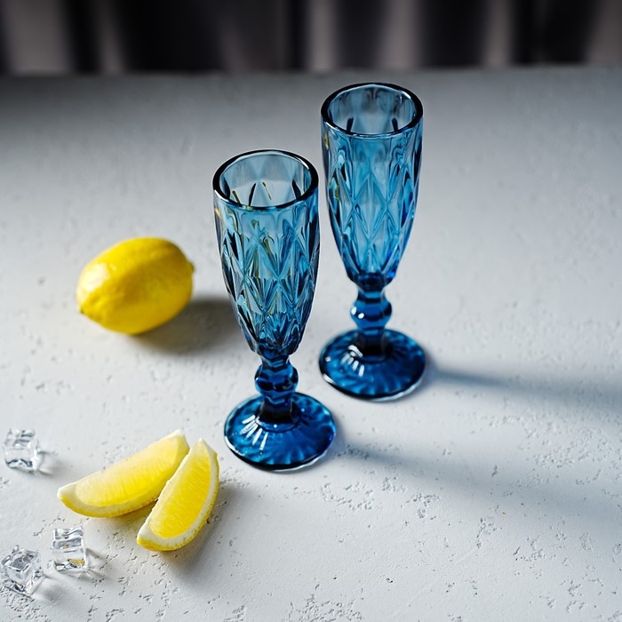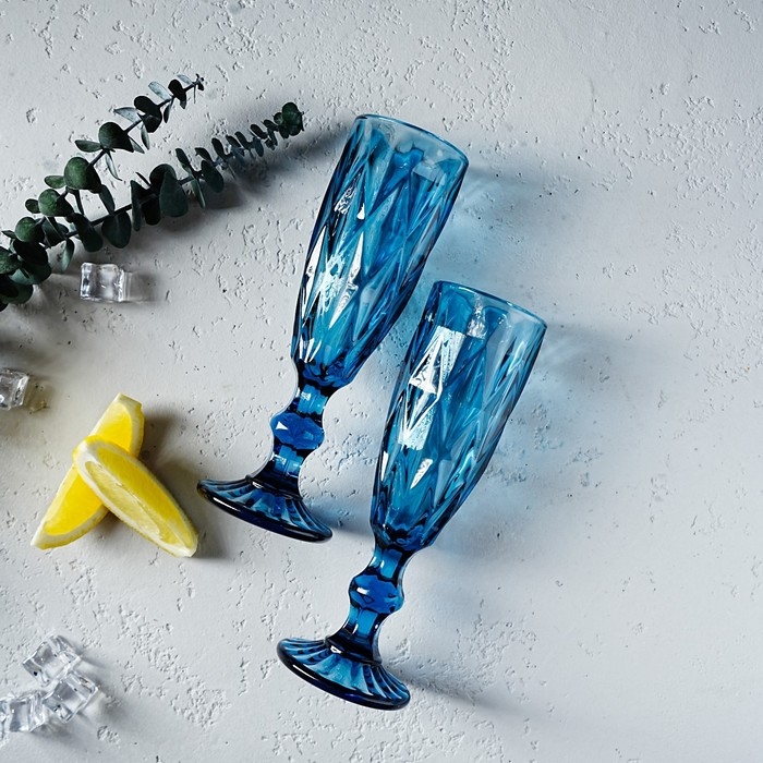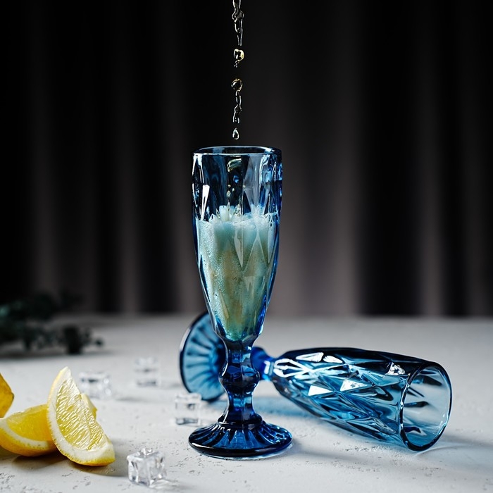 Набор бокалов из стекла для шампанского Magistro «Круиз», 160 мл, 7×20 см, 2 шт, цвет синий