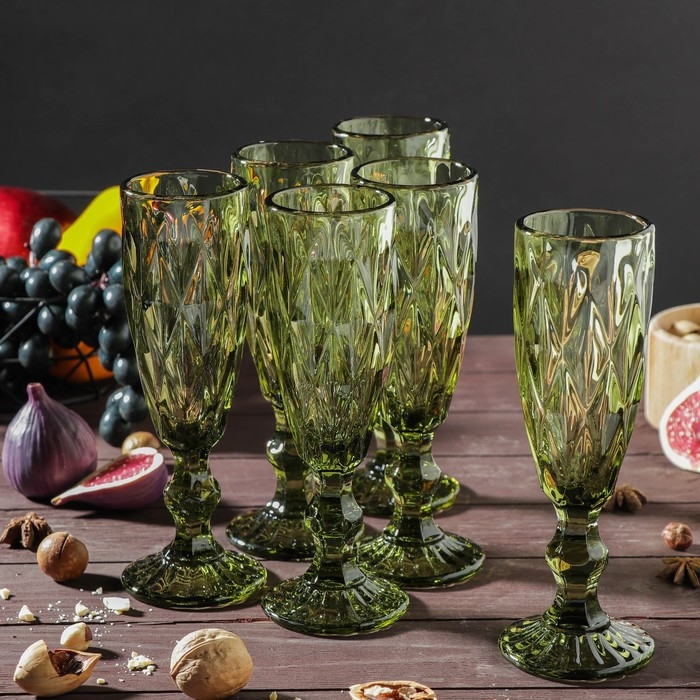 Набор бокалов из стекла для шампанского Magistro «Круиз», 160 мл, 7×20 см, 6 шт, цвет зелёный