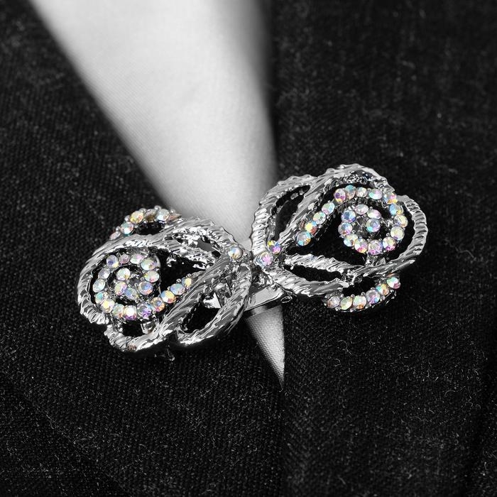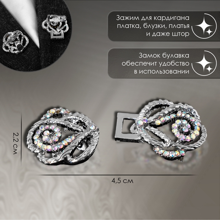 Зажим для кардигана «Петли», цвет радужный в серебре