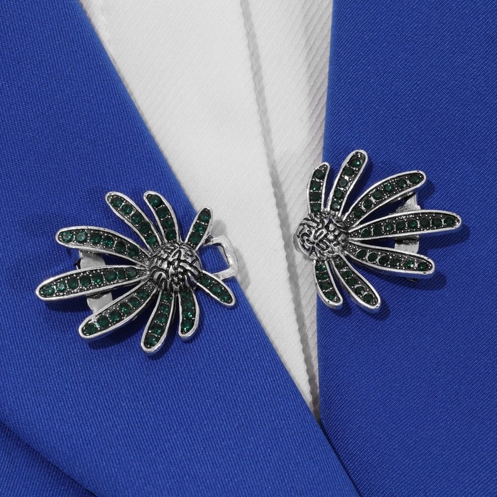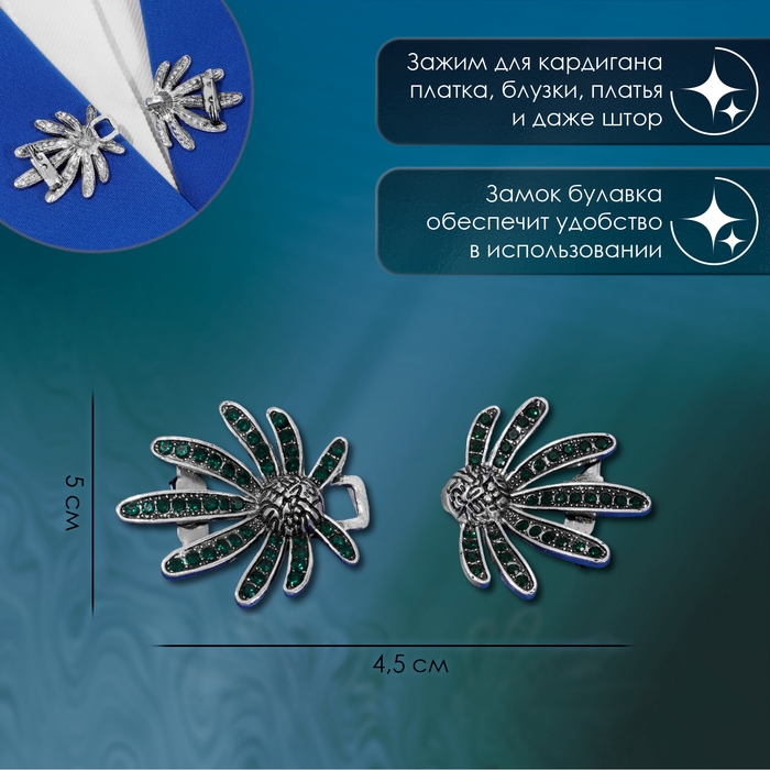 Зажим для кардигана «Цветы» ромашки, цвет зелёный в чернёном серебре