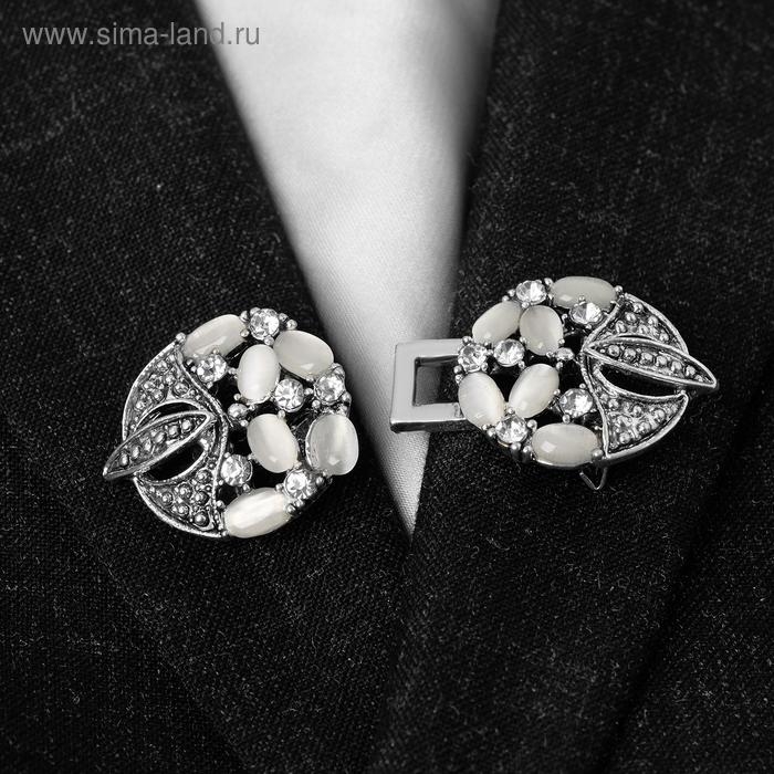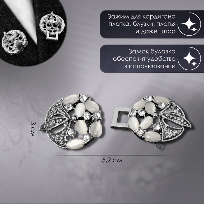 Зажим для кардигана «Роскошь», цвет бело-серый в чернёном серебре