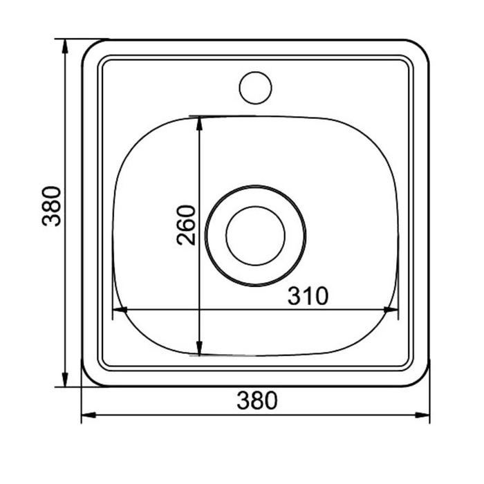 Мойка кухонная MIXLINE 531266, врезная, толщина 0.6 мм, 38х38х15 см, вып. 1 1/2", гофросифон
