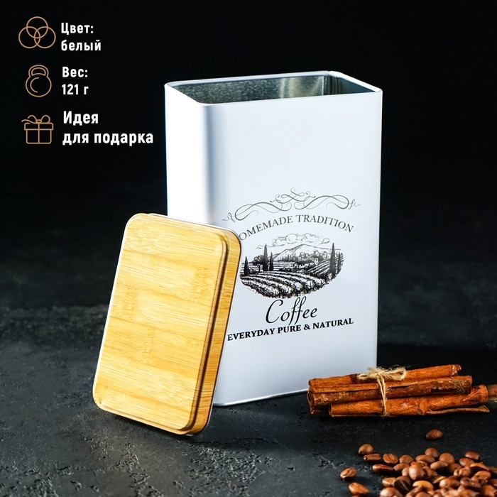 Банка для кофе «Дом и поле», 19×12×8 см, цвет белый