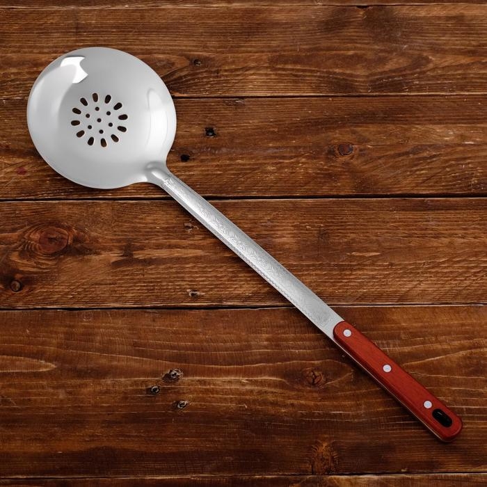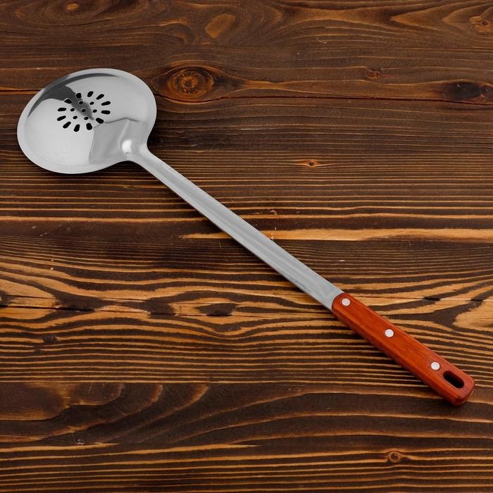 Шумовка для казана узбекская 48см, диаметр 14см, с деревянной ручкой