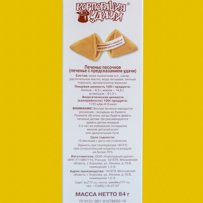 Печенье песочное с предсказаниями "Стандарт", 12 шт., 84 г