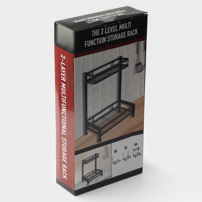 Полка для кухни 2-х ярусная Доляна, 33,5×20,5×39 см, цвет чёрный