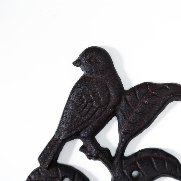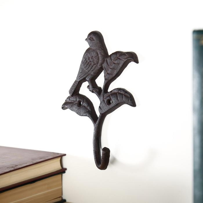 Крючок декоративный металл "Птица и листья" 18х12х4 см